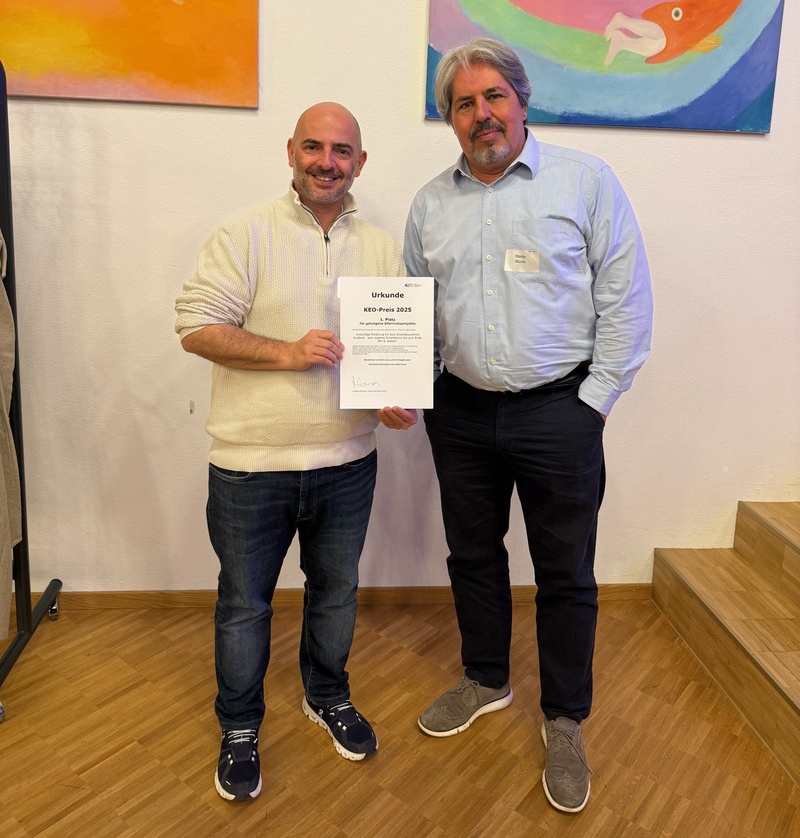 Fabio Palazzo vom Elternrat Hasenbühl-Wermatswil (links) freut sich über den Gewinn des KEO-Preises.